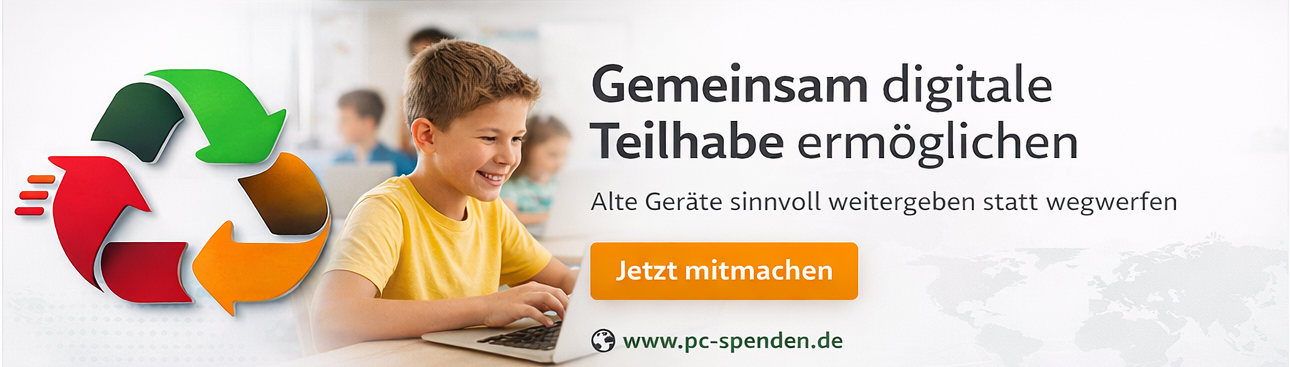 Helfen Sie mit – spenden Sie Ihr nicht mehr genutztes Gerät oder beantragen Sie eines bei uns! Gemeinsam ermöglichen wir digitale Teilhabe und leisten einen wertvollen Beitrag zum Umweltschutz.