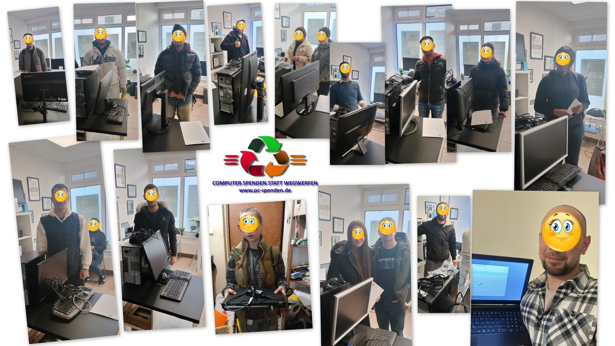 4 Laptops & 2 Drucker von einem Freund erhalten · 3 Geräte per Post verschickt · 9 PCs für ein Sozialprojekt fertig (Abholung Freitag) · 15 Mini-PCs einsatzbereit